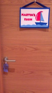 Después de investigar por internet lo que se podia hacer con ella, me decidí a hacer un cartelito para la puerta con el nombre de mi niño.