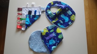 Pues bien como podéis ver es un juego de toalla de eruptar, bastante práctica por cierto, un babero y una toallita de juegos, ya sé que aún no lo utilizará pero luego le vendrá genial.