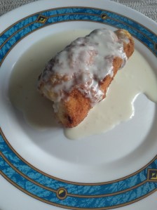Después se saca se emplata y se hace una salsa para acompañar, yo en mi caso hice una salsa de queso, pero vosotros podéis hacer la que más os guste, por ejemplo una de champiñones…