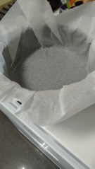 Lo primero que debemos hacer es precalentar el horno a unos 170º, luego forrar el molde con el papel y reservarlo.