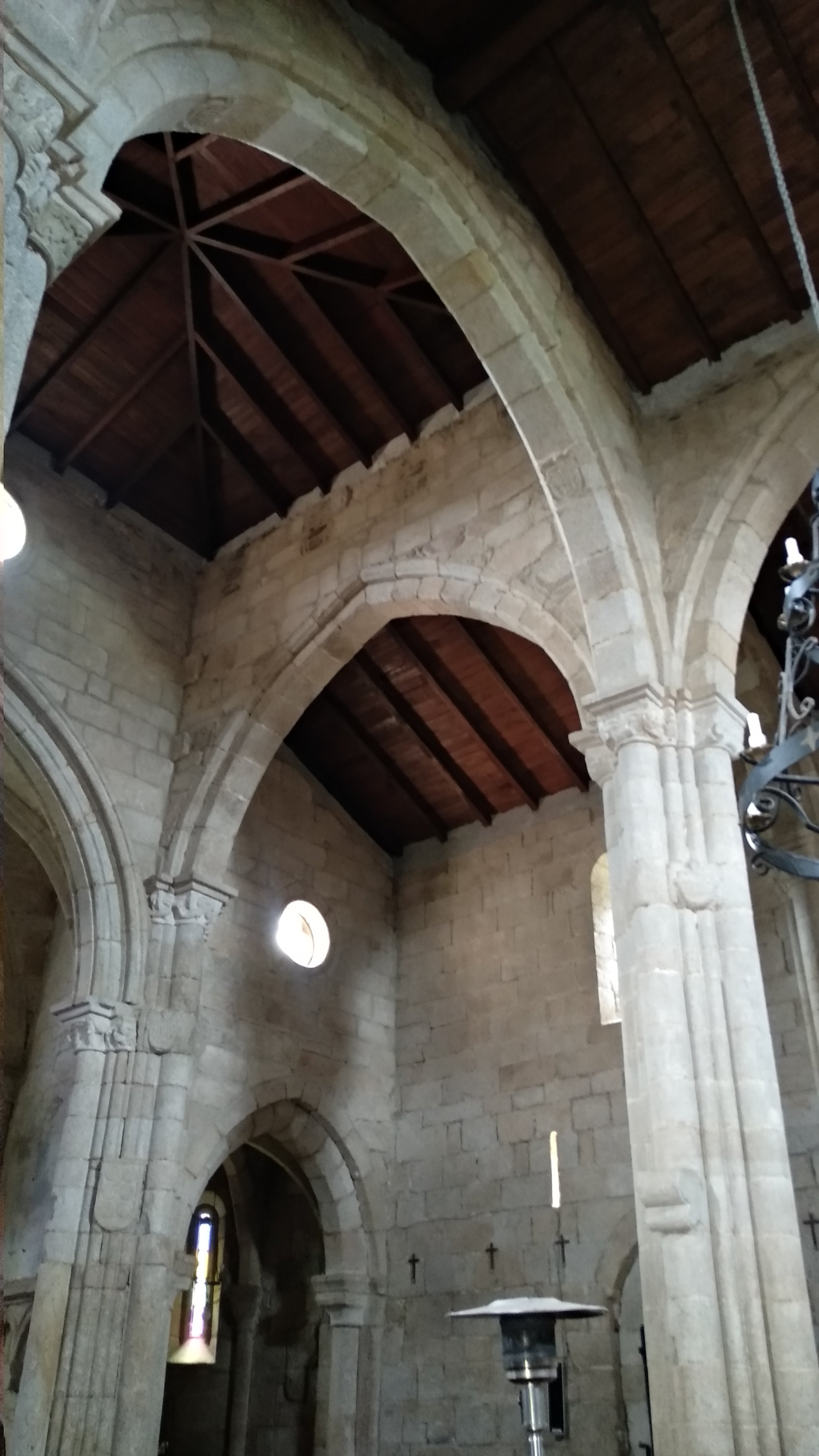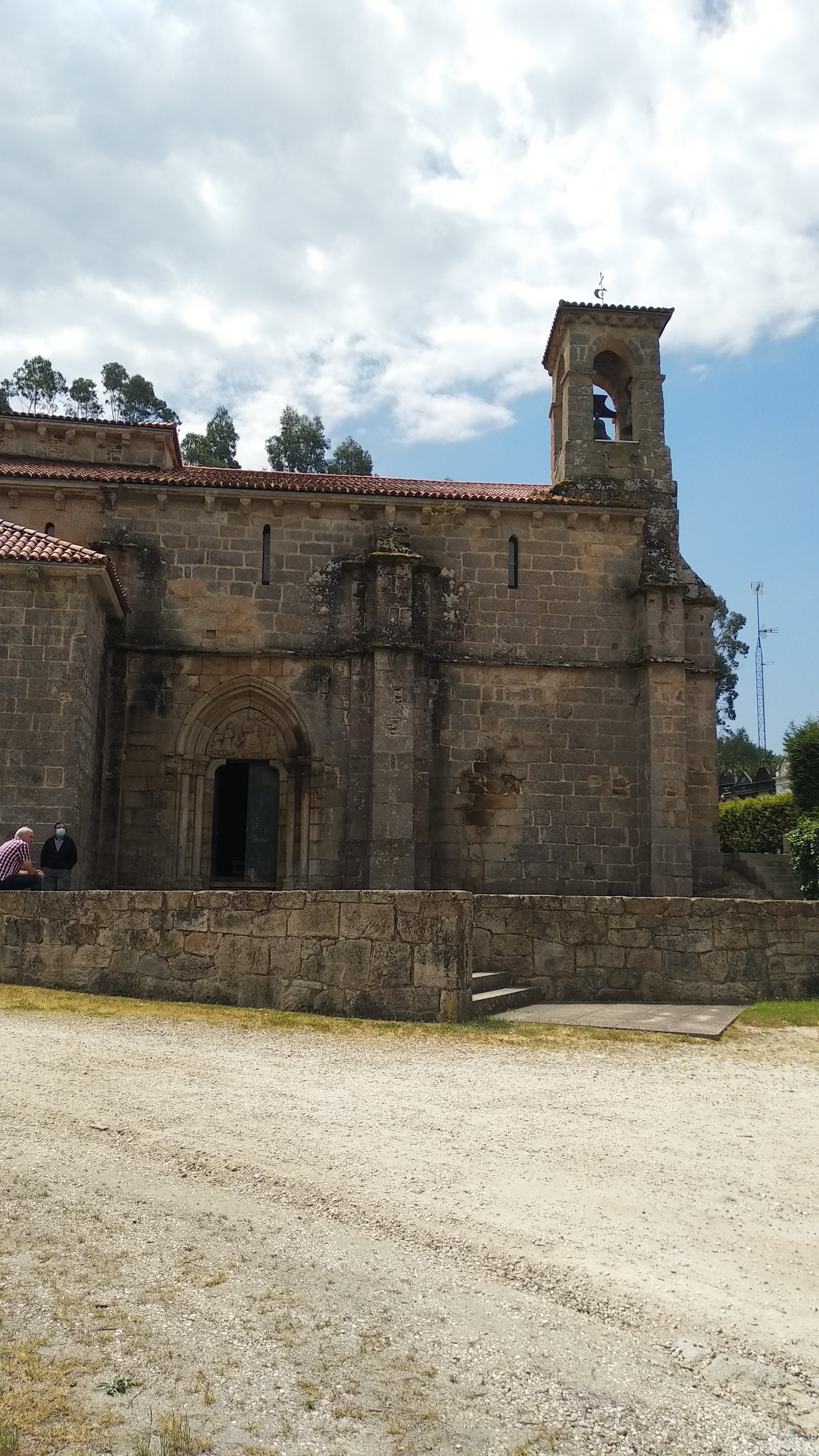 Fue construida en el siglo XIV, sobre un antiguo templo mozárabe ( solo se conserva un capitel de mármol y un modillon), fue un miembro de la familia Castro el que apoyó el levantamiento de una nueva iglesia, pero quedaron paralizados por los conflictos entre los partidarios de Pedro I y Enrique, solo se había edificado la cabecera, luego bajo el control de Fernán Pérez de Andrade » O Boo» se concluye la iglesia del monasterio, por petición de los monjes.