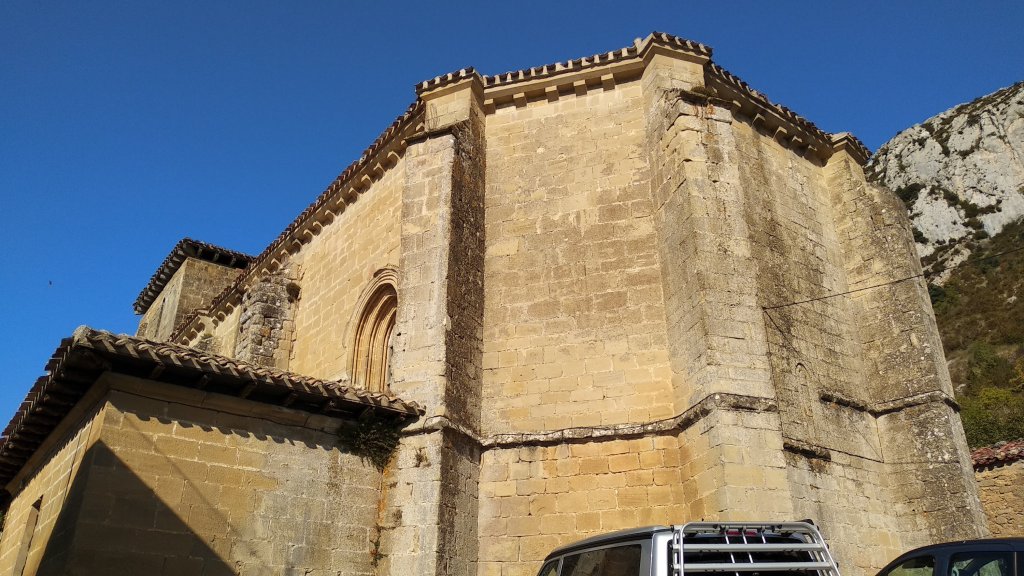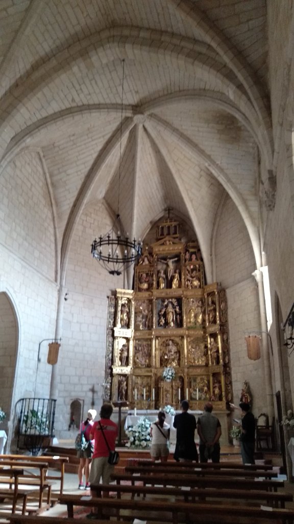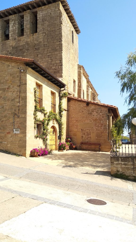 Luego como el recorrido es circular y llegamos al mismo punto de partida, pues hicimos una visita al pueblo y primero nos acercamos a su iglesia N𝐮𝐞𝐬𝐭𝐫𝐚 𝐒𝐞𝐧̃𝐨𝐫𝐚 𝐝𝐞 𝐥𝐚 𝐀𝐬𝐜𝐞𝐧𝐬𝐢𝐨́𝐧, aprovechando que era domingo y que estaba abierta para poder verla por dentro, y la verdad me sorprendió es una iglesia de estilo progótico datada de principio del siglo XIII, consta de una nave con cabecera pentagonal y capillas hornacinadas en los lados, tiene un retablo de 1560, el coro a los pies es del siglo XVII obra que se emplaza al taller del maestro Arnao de Bruselas establecido en La Rioja.