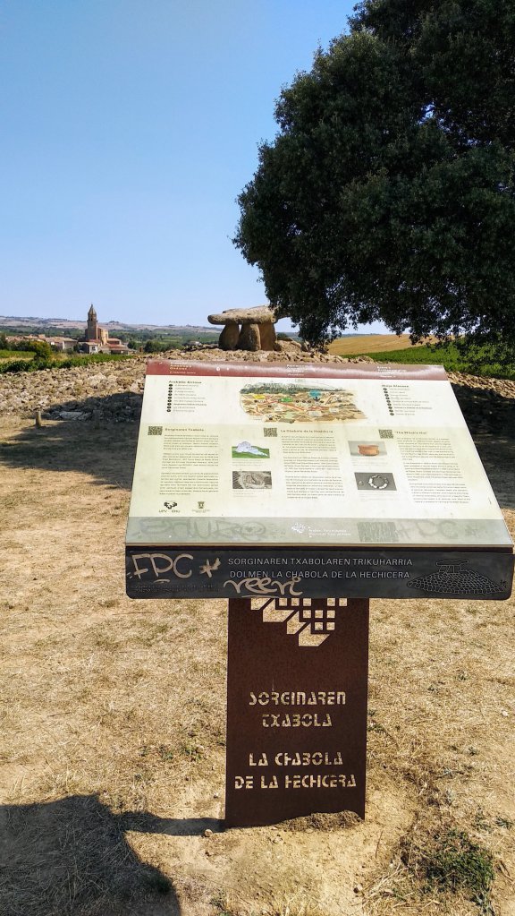 y ya nuestra última parada fue al 𝑫𝒐𝒍𝒎𝒆𝒏 𝒍𝒂 𝑯𝒆𝒄𝒉𝒊𝒄𝒆𝒓𝒂, a las afueras de Elvillar, es quizás el más grande y mejor conservado de la zona, descubierto en 1935, tres grandes piedras verticales sujetan otra horizontal más grande, otras nueve piedras forman la cámara en forma poligonal.