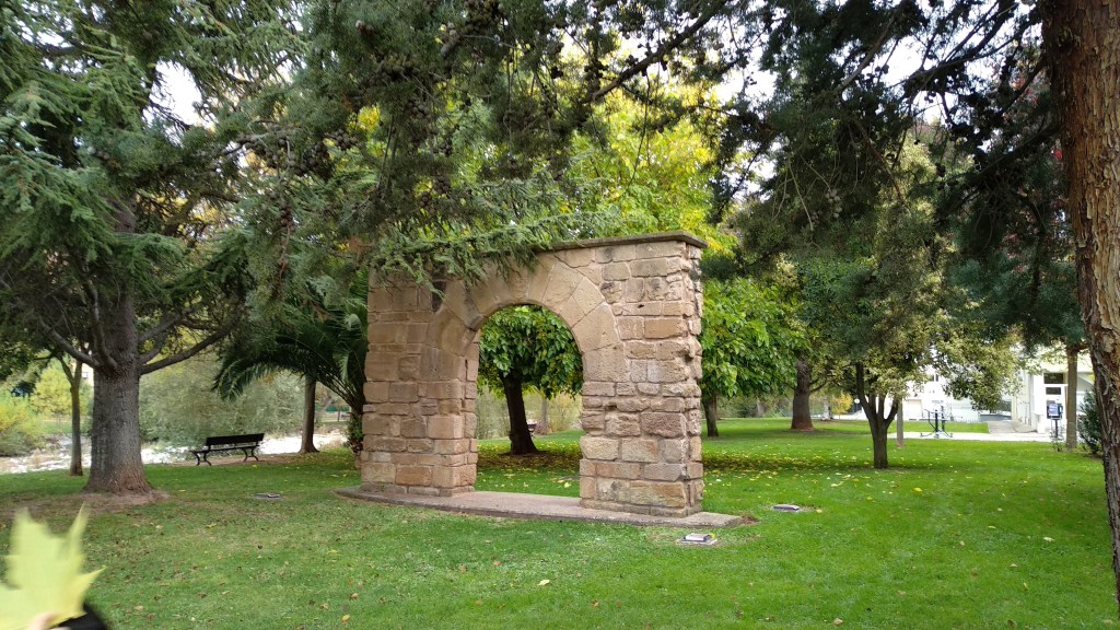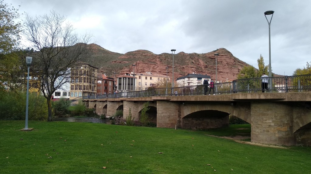 Justo ya en el puente de San Juan de Ortega, puente que ya existía en el siglo X y que fue remodelado en el siglo XII por Juan de Ortega, durante los siguientes siglos ha sido constantemente reconstruido y reforzado hasta que en 1866 se construye el actual, a la derecha encontramos La Puerta de Nájera,que formaba parte de un complejo sistema de estructutas, esta puerta reconstruida da prueba de ello.