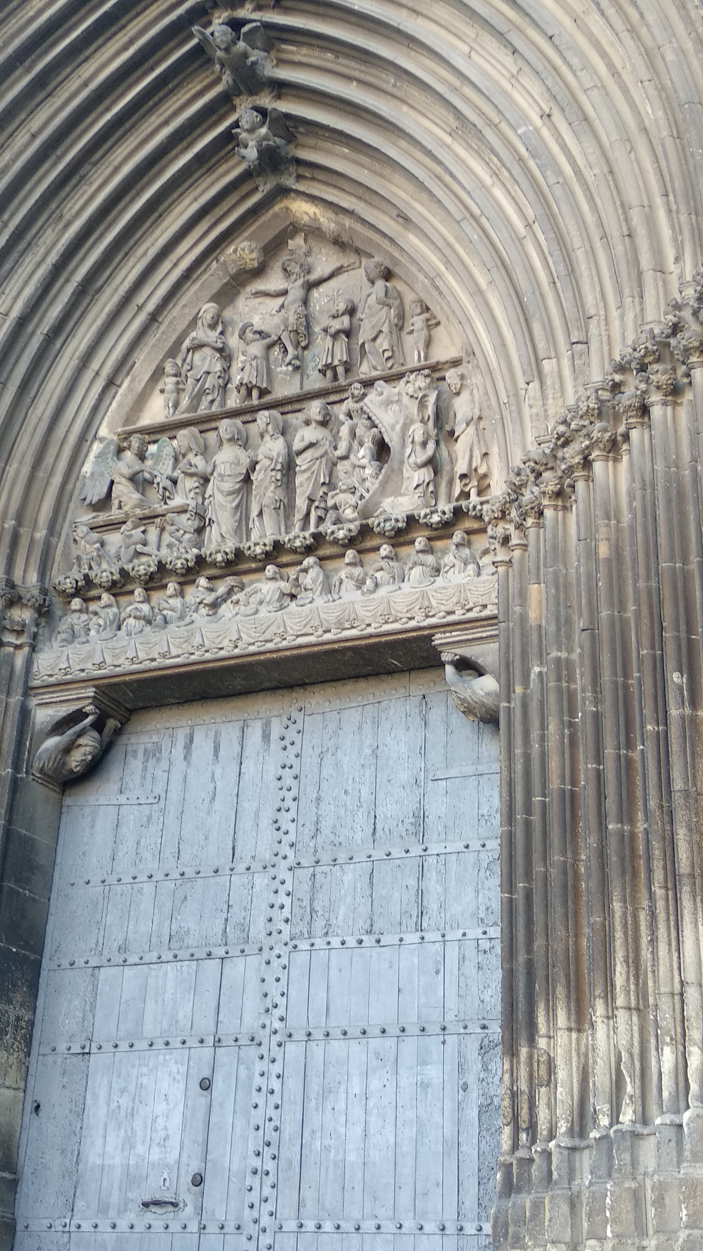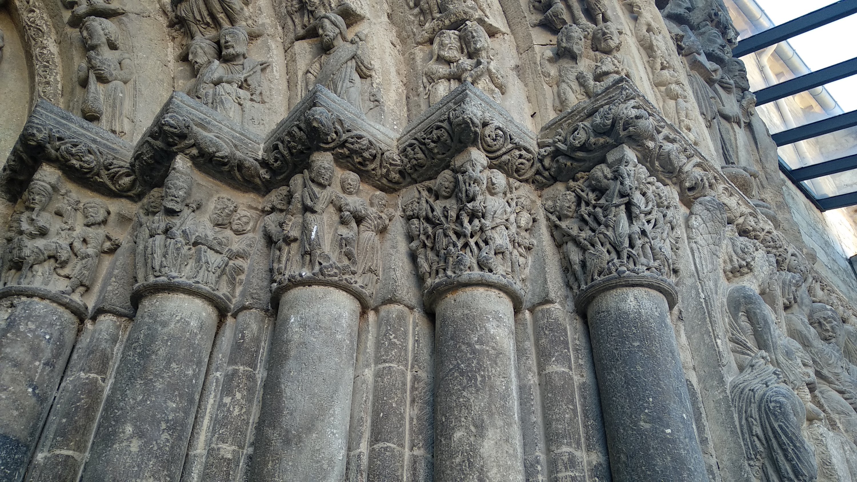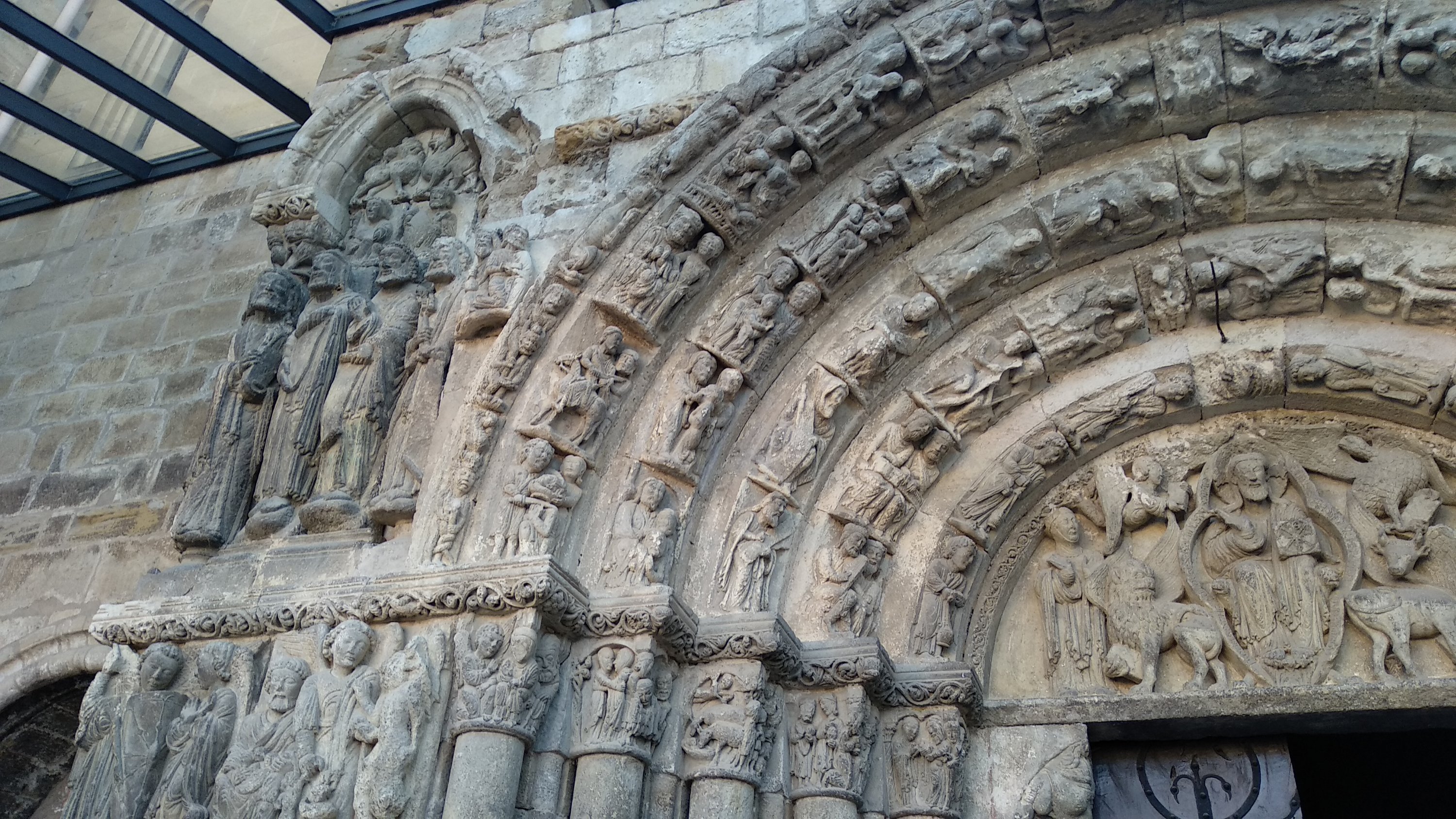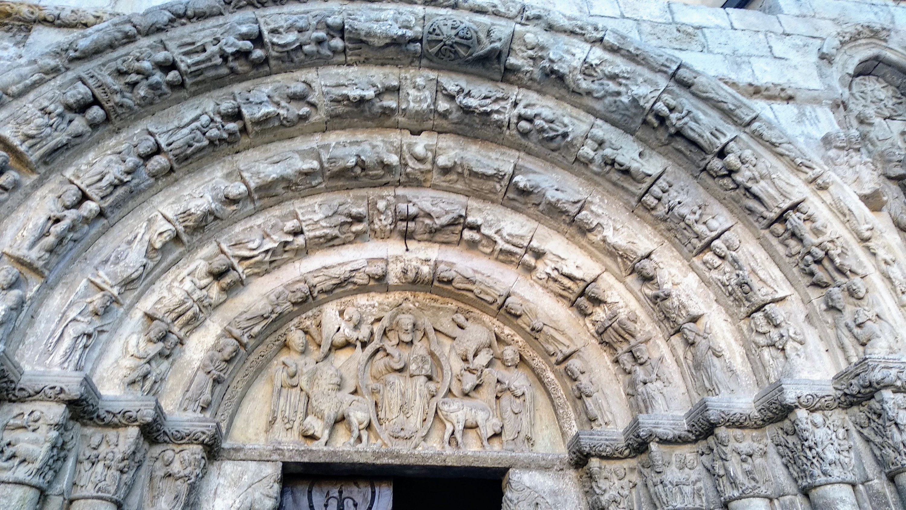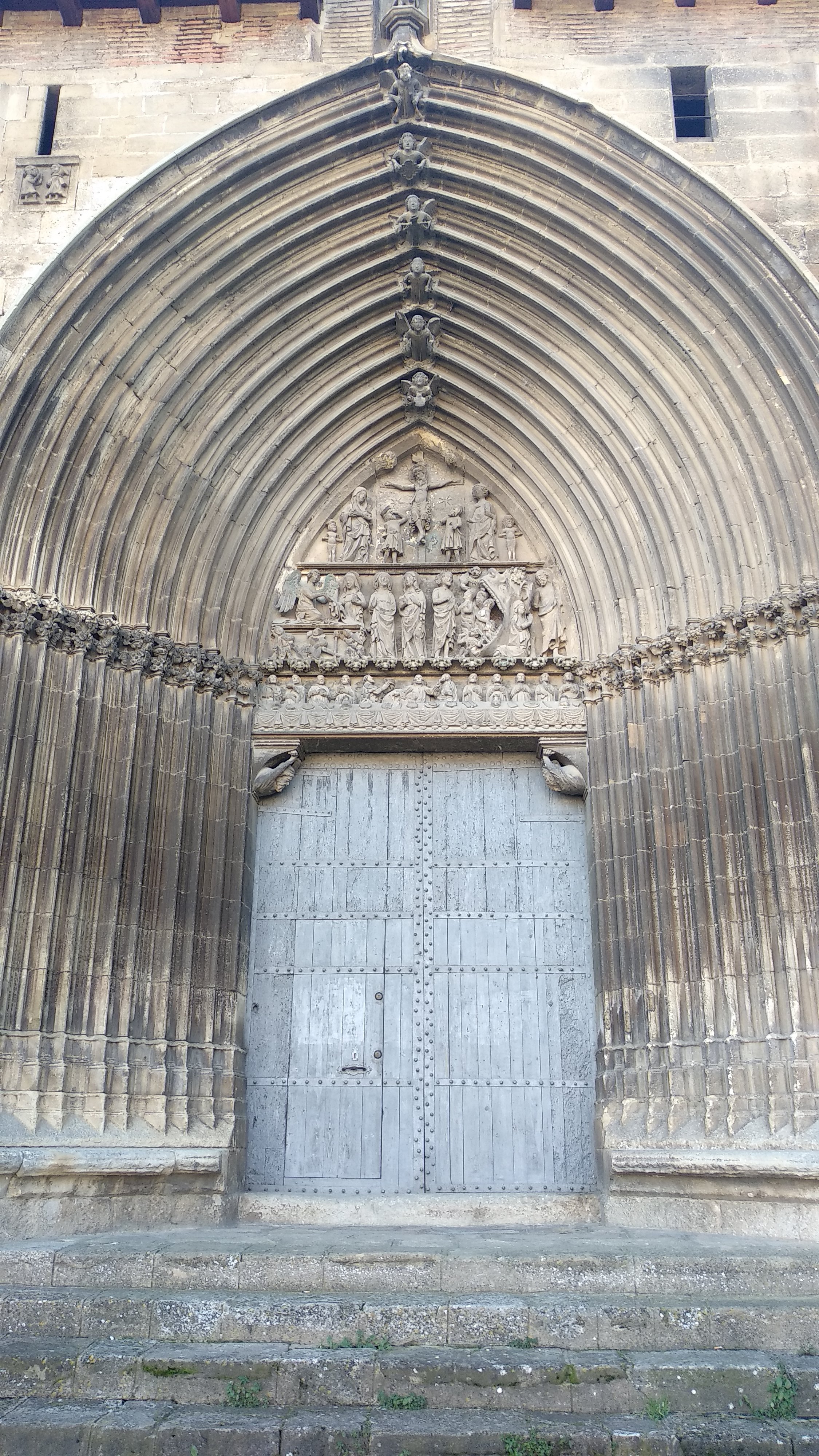 Nuestra excursión comenzó visitando la Iglesia del santo sepulcro, cerca hay un aparcamiento y fue allí donde dejamos el coche, esta iglesia comenzada a finales del siglo XII y que se termino en el siglo XIV, en su portada si vemos las claves de las arquivoltas vemos ángeles portando los elemento de la pasión y coronando estas hay una talla de Cristo resucitado. Además de una escena de la Crucifixión, la Resurrección y el descenso de Cristo a los infiernos y la última cena.