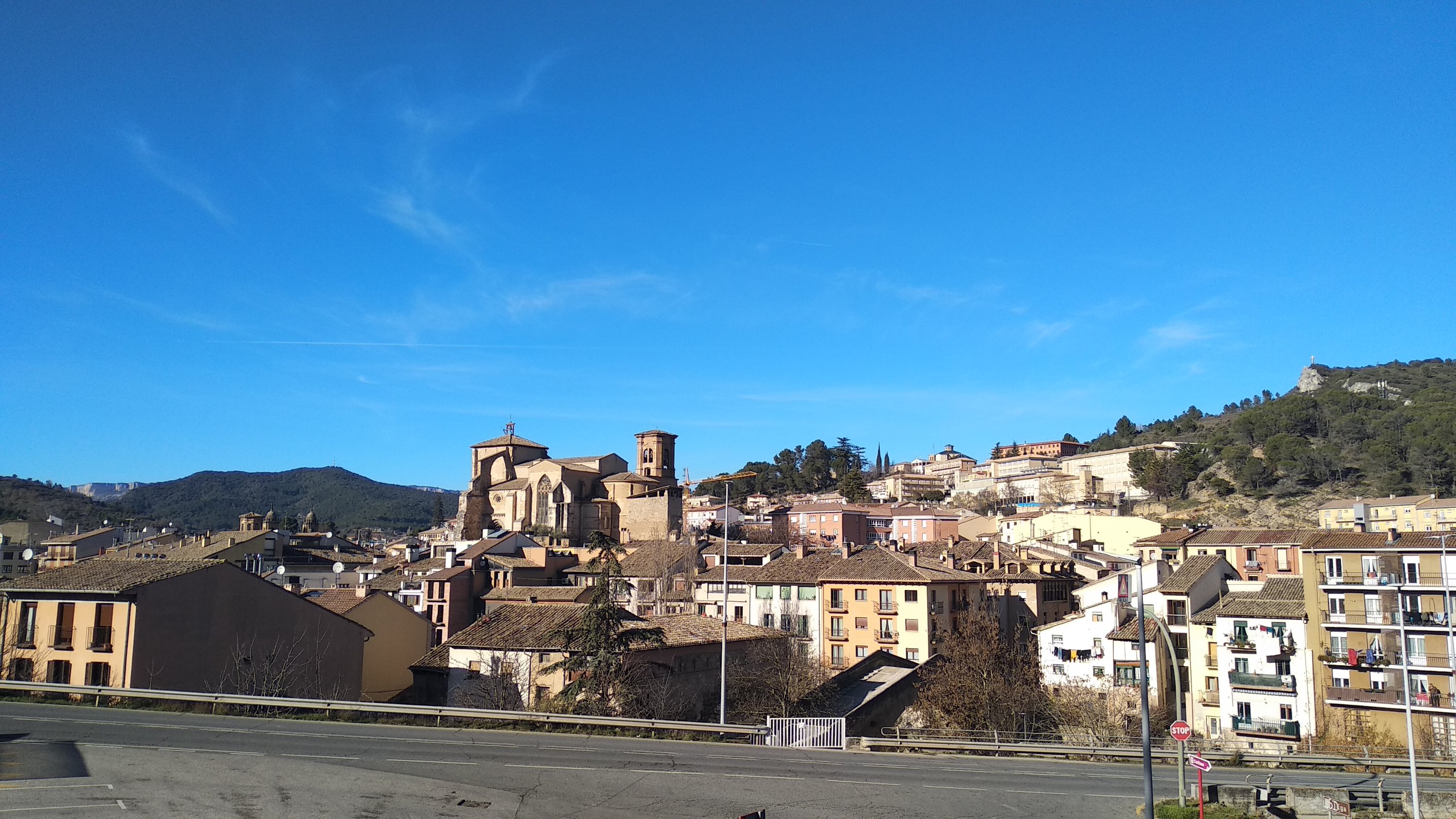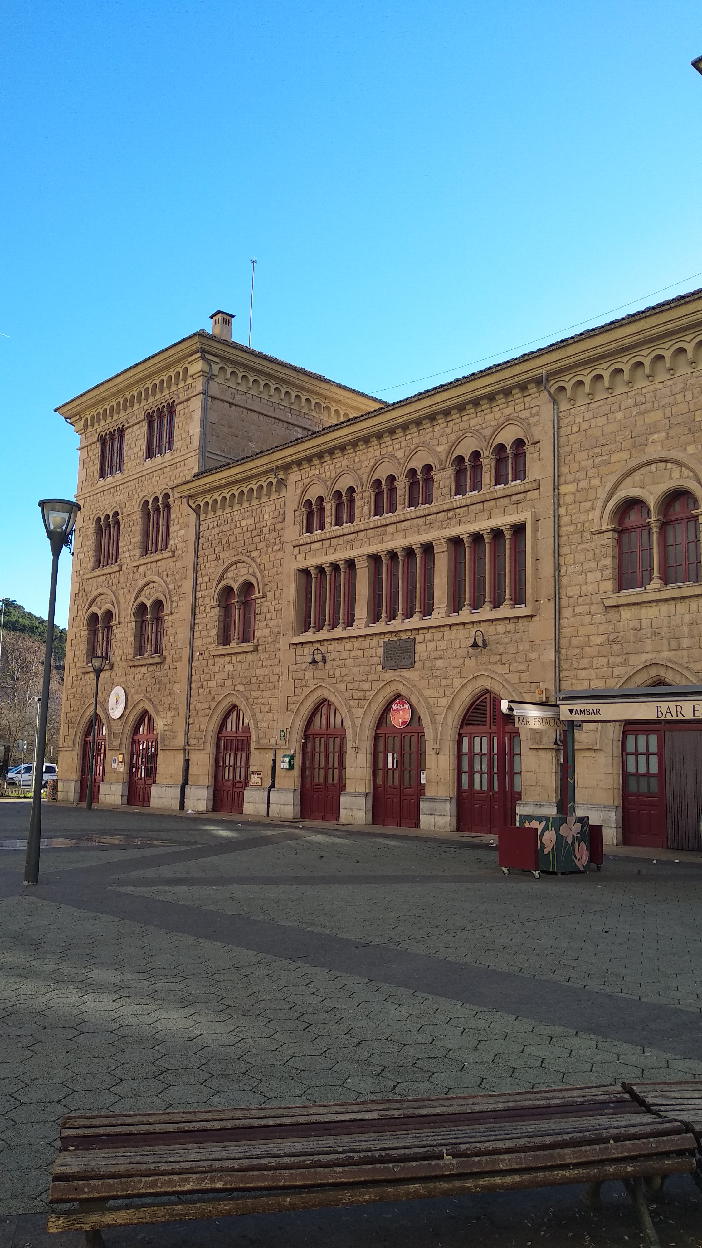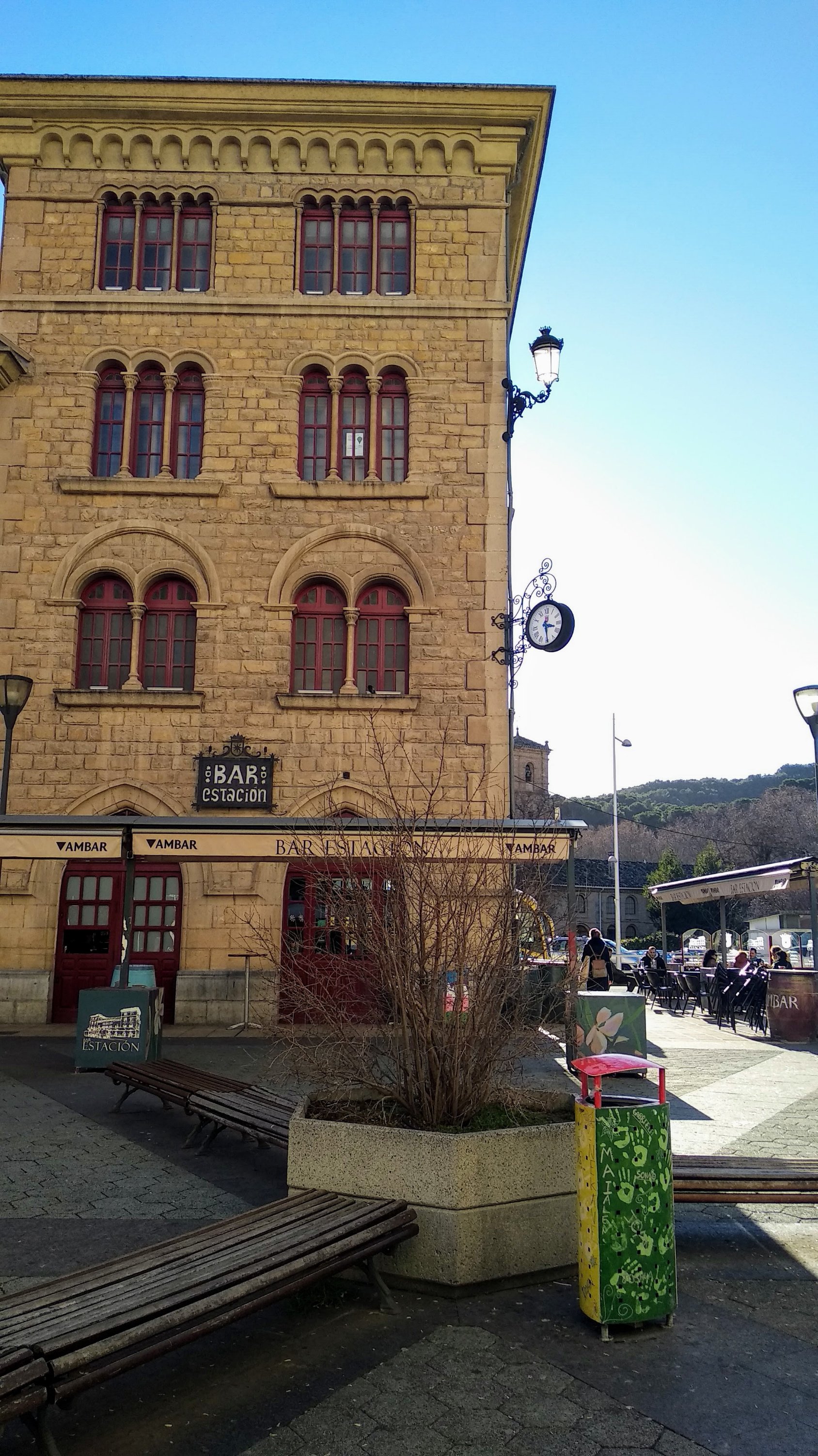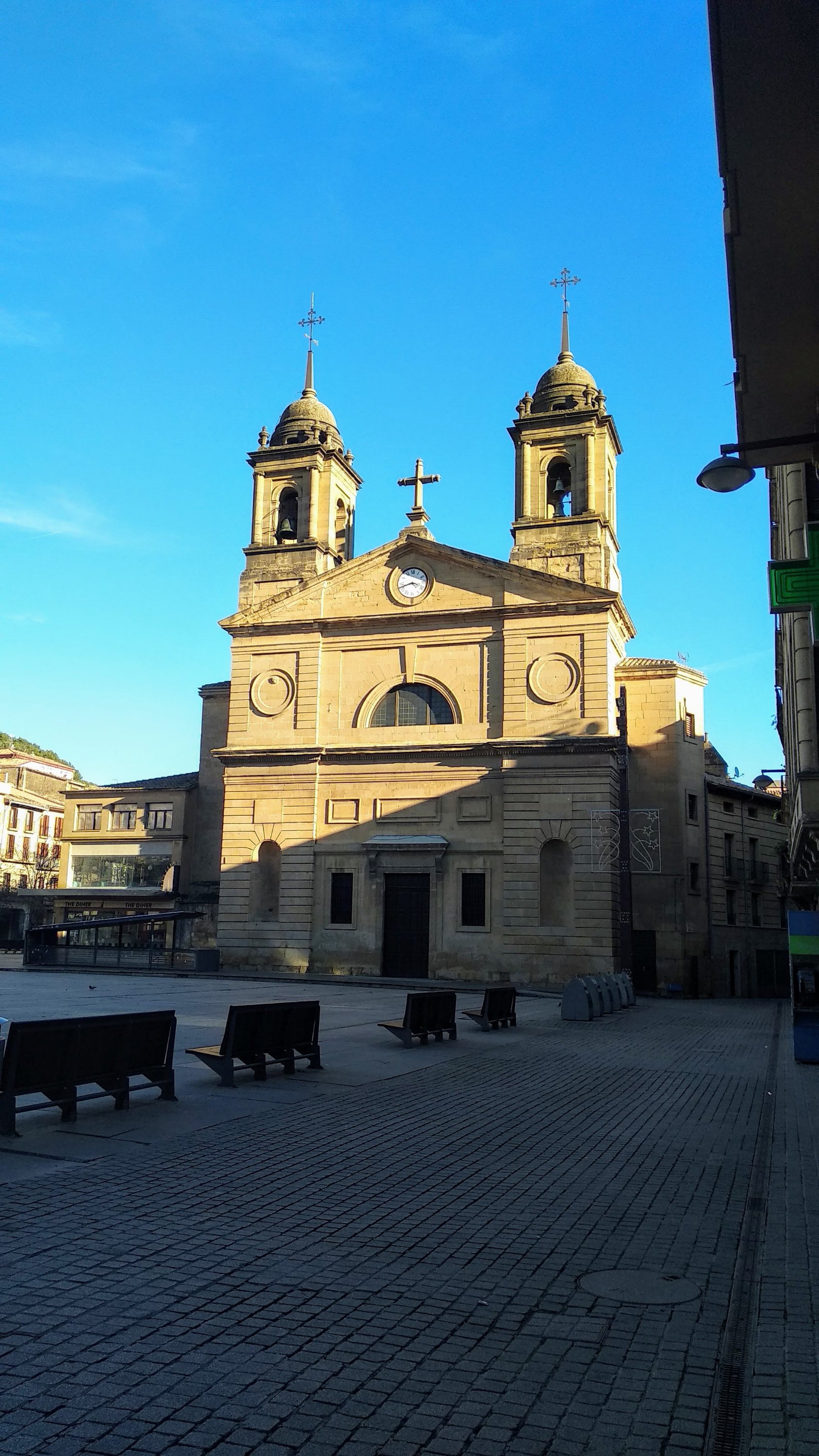 Así que volvemos un poco sobre nuestros pasos hasta el puente nuevo el que cruzaremos hasta el centro urbano, pero no sin antes pararnos un poco en el parque para que el peque disfrute un poco, después callejearemos por el centro, pasando por la estación y adentrándonos hasta la Plaza de los Fueros, plaza que constituye el punto de reunión de la ciudad de ahí cogemos camino hacia la Iglesia de San Miguel