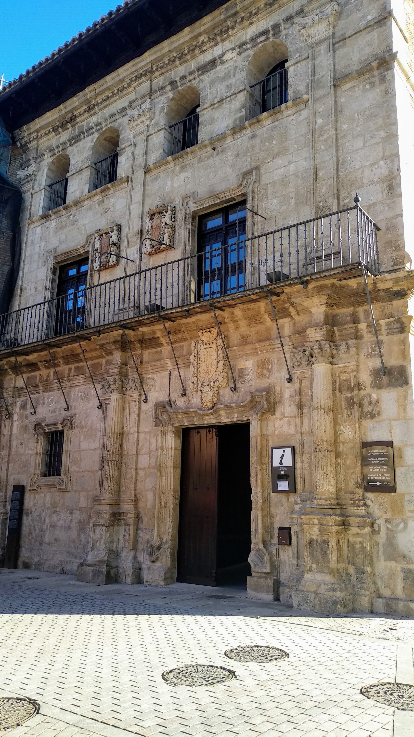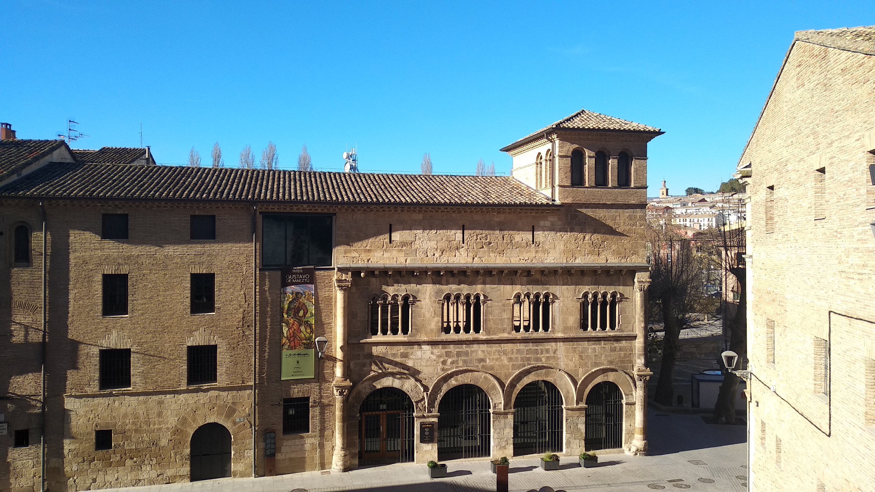 Justo al lado está el Palacio de los Reyes de Navarra que es sede del Museo Gustavo de Maeztu (siglo XII) con una fachada porticada, en la planta principal ventanas germinadas con capiteles de influencia oriental, las torres y la galería de ladrillo que rematan el edificio pertenecen al siglo XVII.