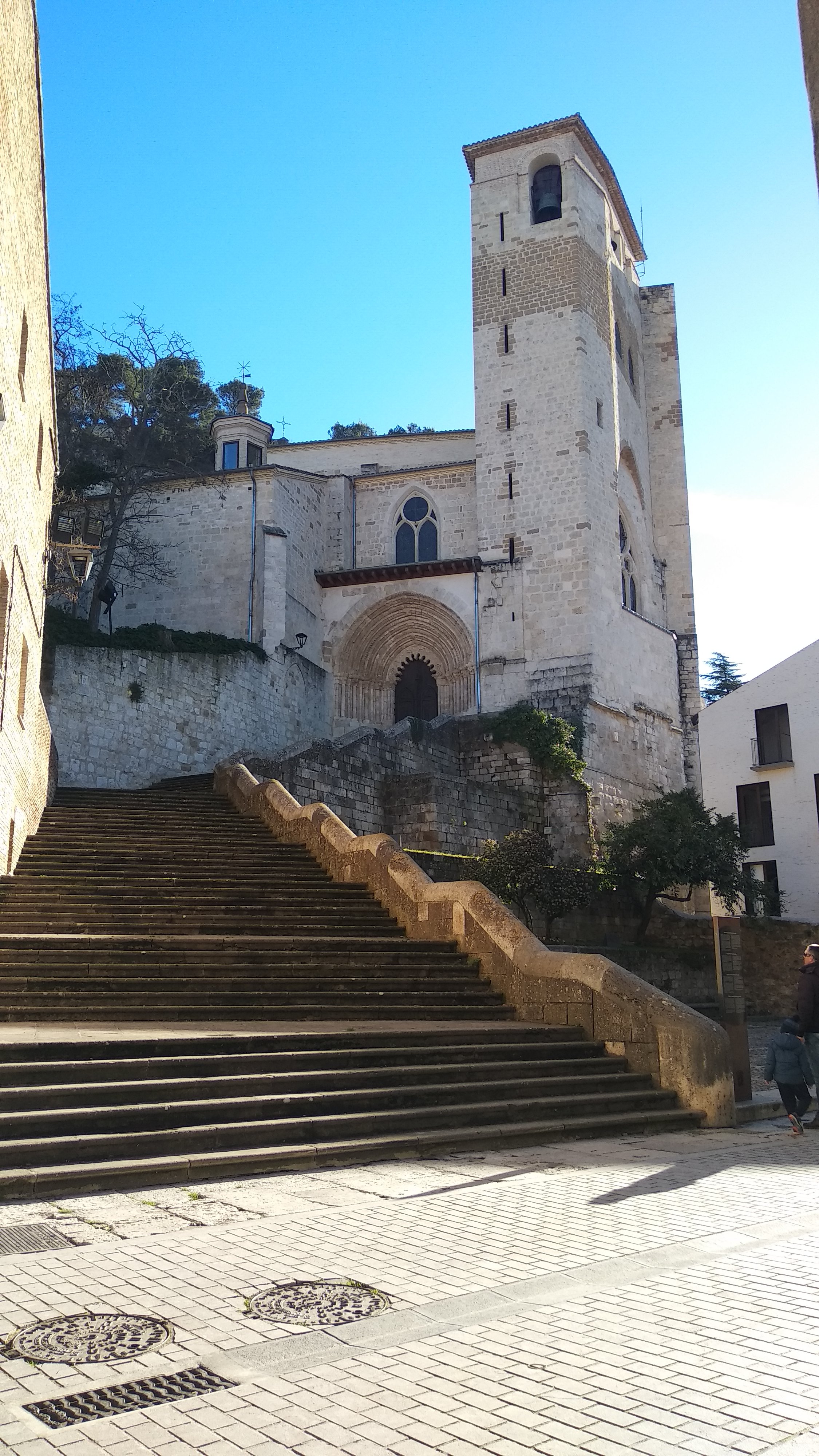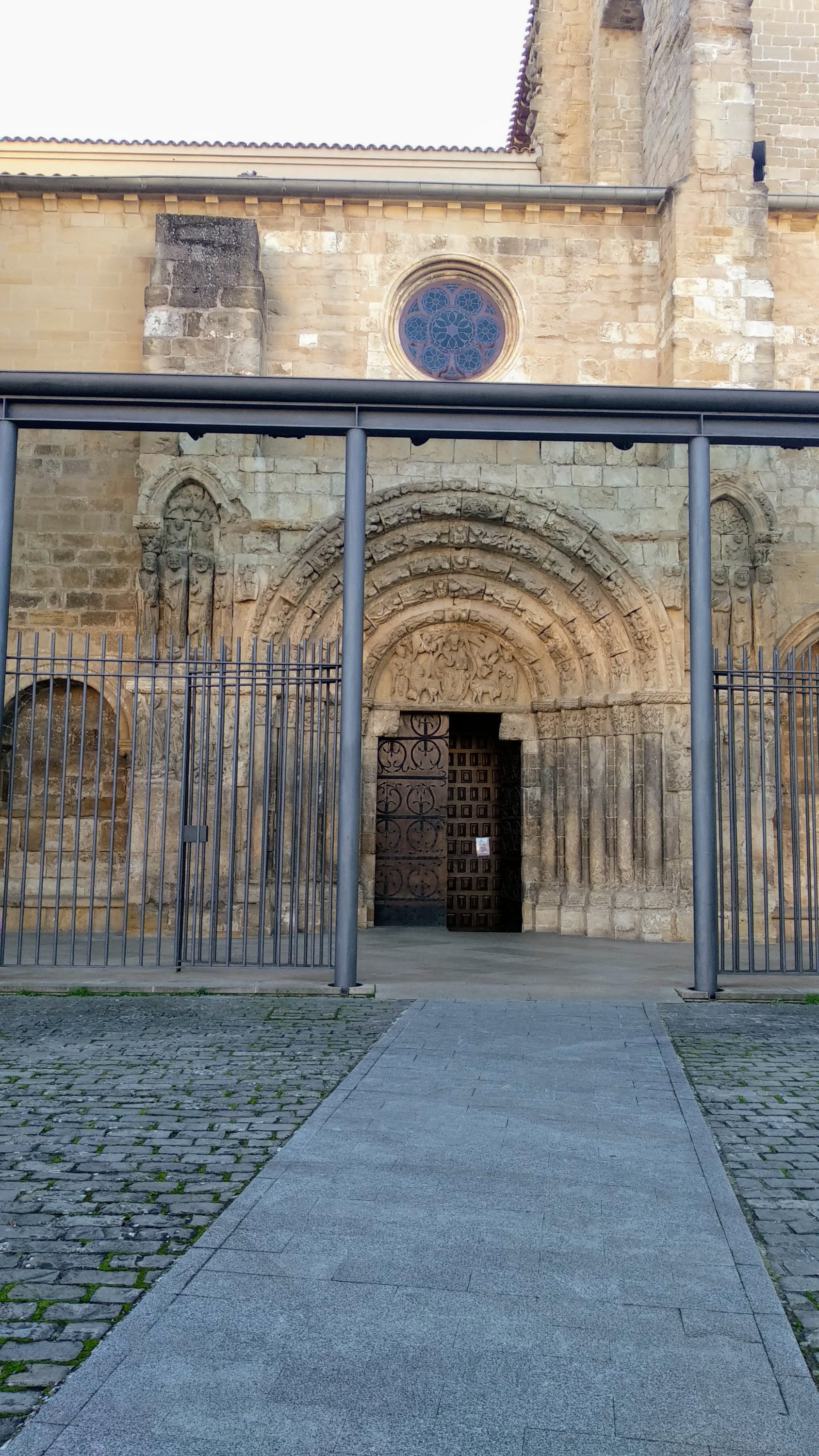 Hay unas escaleras construidas en 1968 que conducen hasta la Iglesia de san Pedro de la Rua llegando a la puerta de arco poli lobulado de influencia árabe (siglo XIII) pero con aportaciones decorativas románicas en encaje de carácter vegetal, geométrico y figurativo, con arpía, sirenas, centauros y grifos.