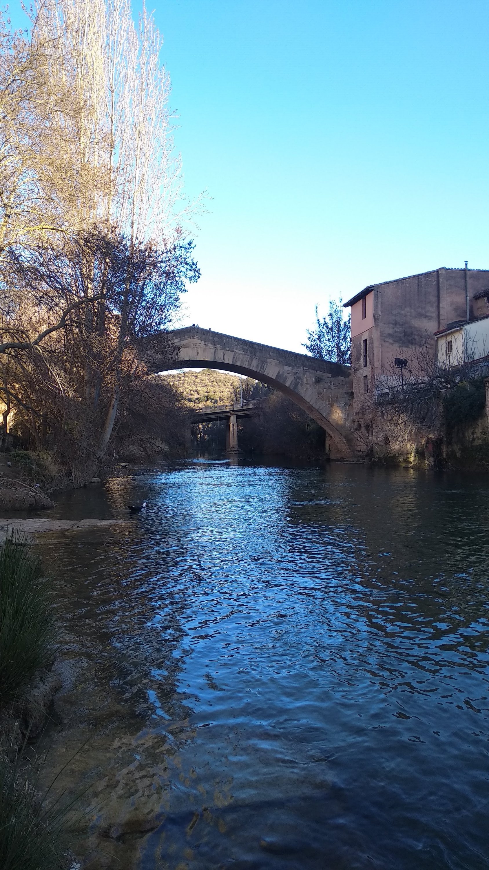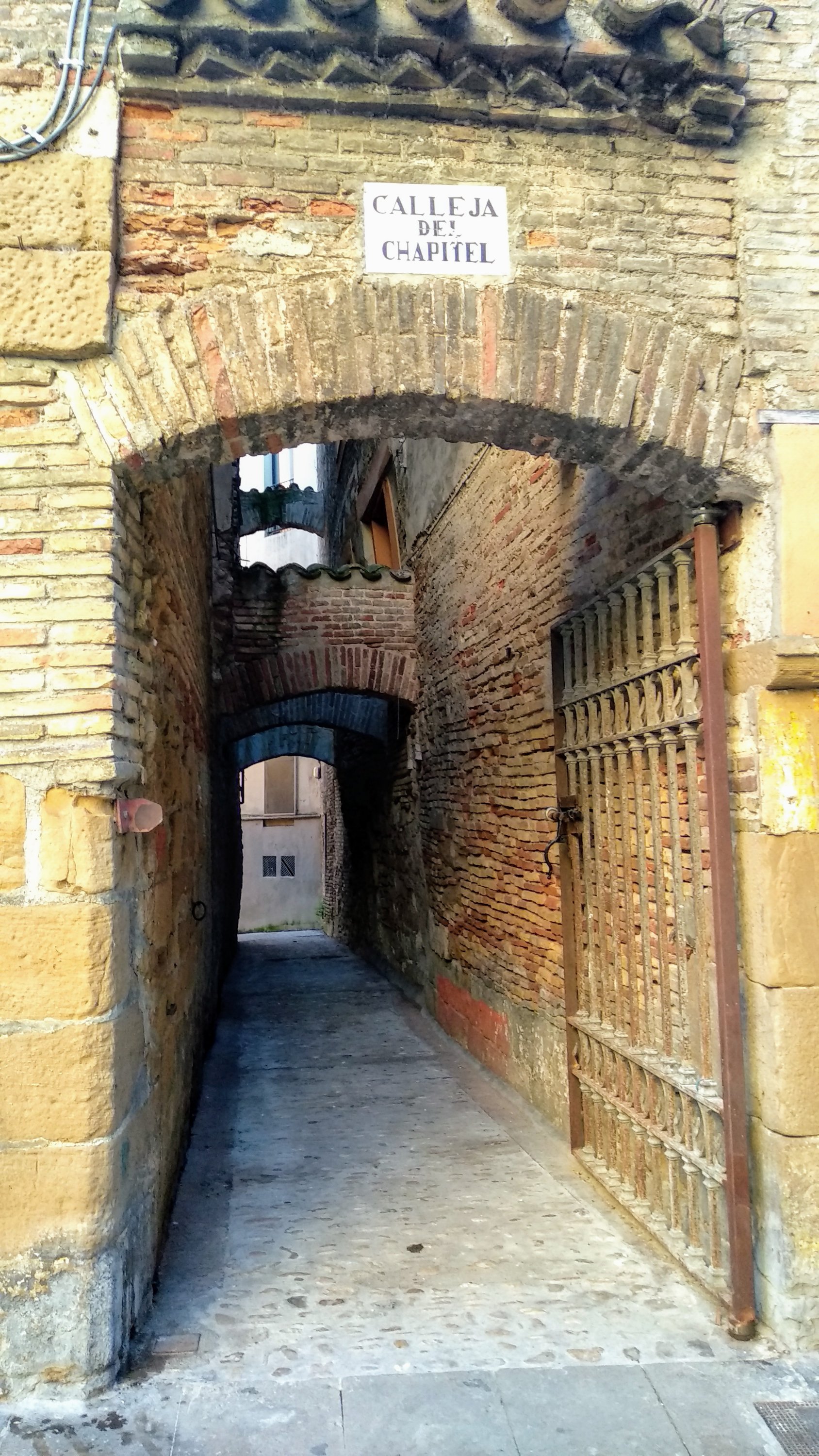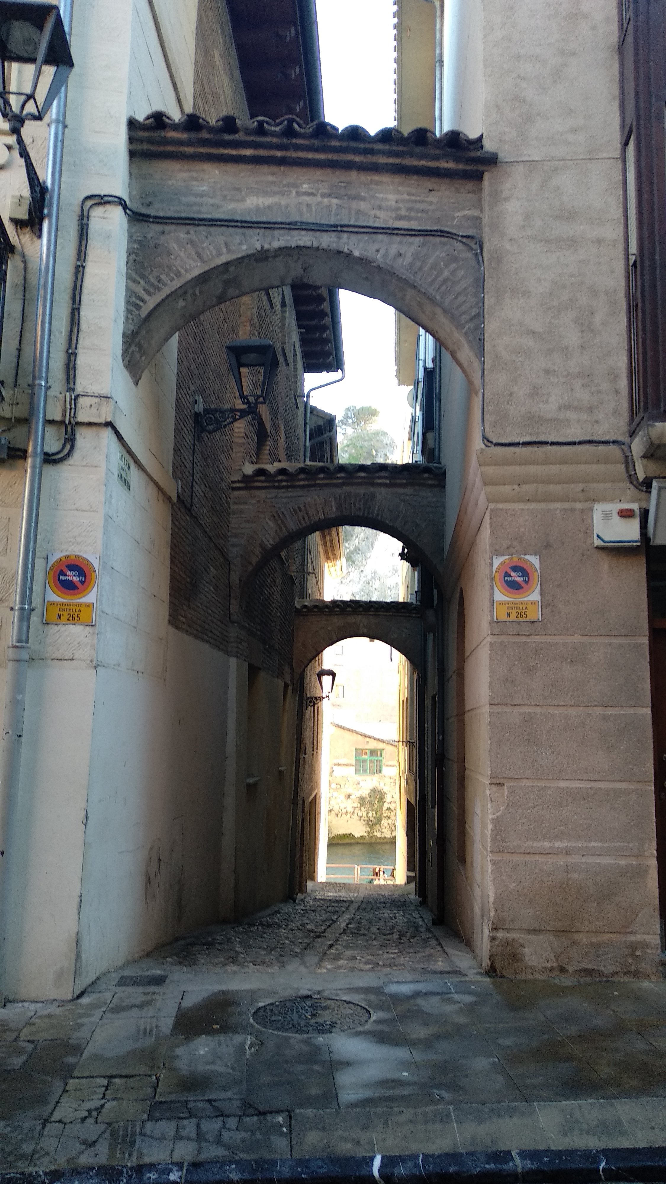 Muy cerca de esta Iglesia nos topamos con la Calleja del Chapitel, un pintoresco paso que desemboca a la orilla del rio Egea, siguiendo por esa calle encontramos otro callejón curioso que también llega a orillas del río, continuamos hasta llegar al Puente de la Cárcel para cruzarlos y ya terminar nuestra visita a “la bella Estella”