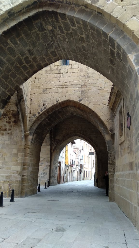 La distingues porque a ambos lados de la puerta hay sendas inscripciones donde resume la historia del edificio, sirve de pasaje publico entre dos calles, actualmente es la sede del centro de Coordinación de servicios Social de la Rioja.