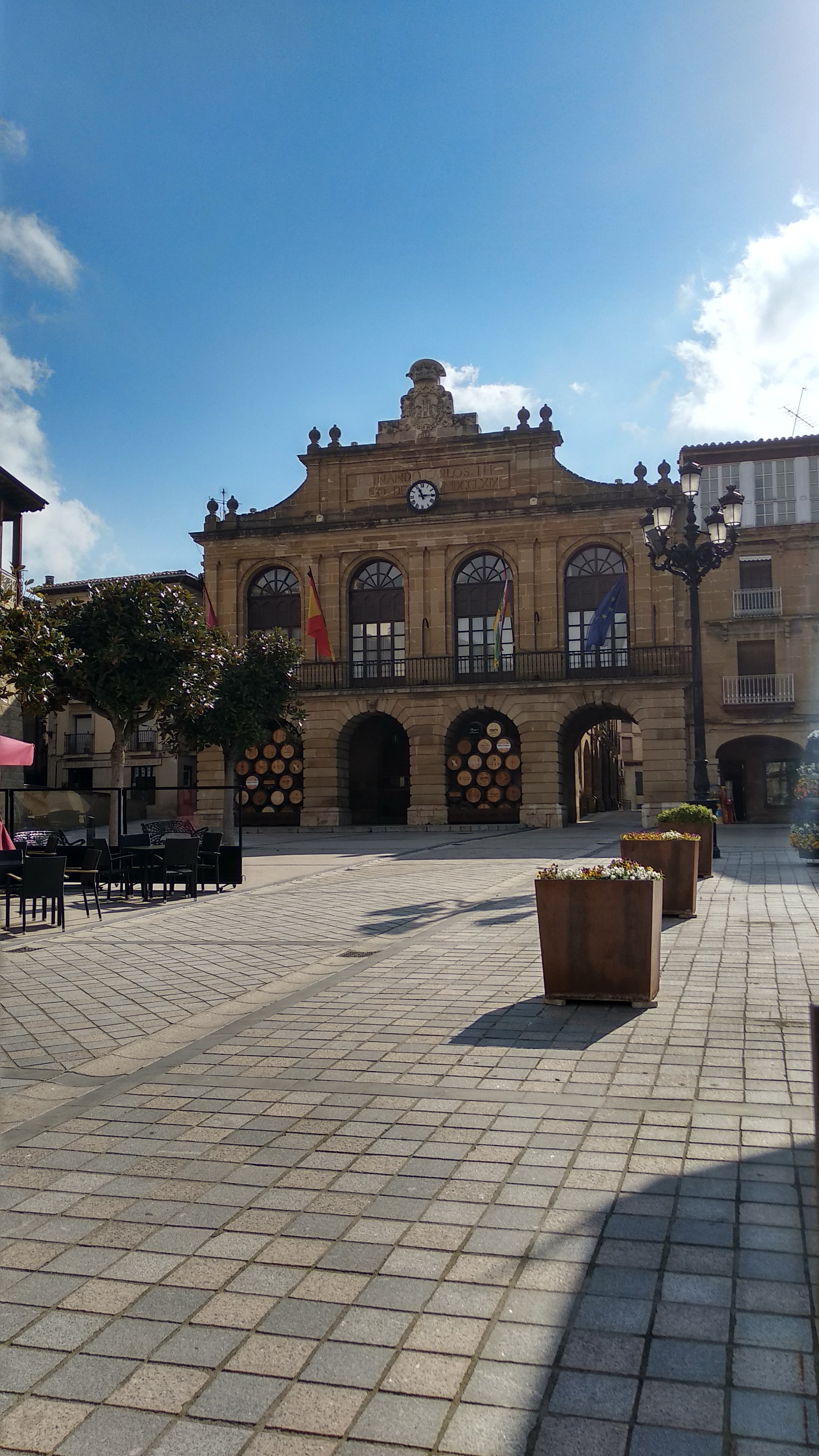 Empecemos por la Plaza de la Paz , que es elcentro neurálgico de la ciudad, en medio de la Plaza se encuentra el Kiosco, luego también está el Ayuntamiento, edificio del siglo XVIII, con sus soportales de cuatro arcos, decorado con barricas que hacen alusión a su principal atractivo turístico, a un lado del Ayuntamiento podemos ver uno de los Palacios que esta ciudad tiene El Palacio de Bendaña situado en la antigua muralla medieval de estilo plateresco del siglo XVI, es un edificio de tres plantas, en el que destacan sus dos fachadas una del siglo XVI y la otra del siglo XVIII y es aquí donde se encuentra la oficina de turismo y la Biblioteca Municipal.