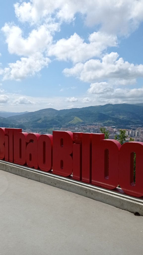 llegáis al mirador cuya barandilla con las letras de Bilbao, Bilbo le