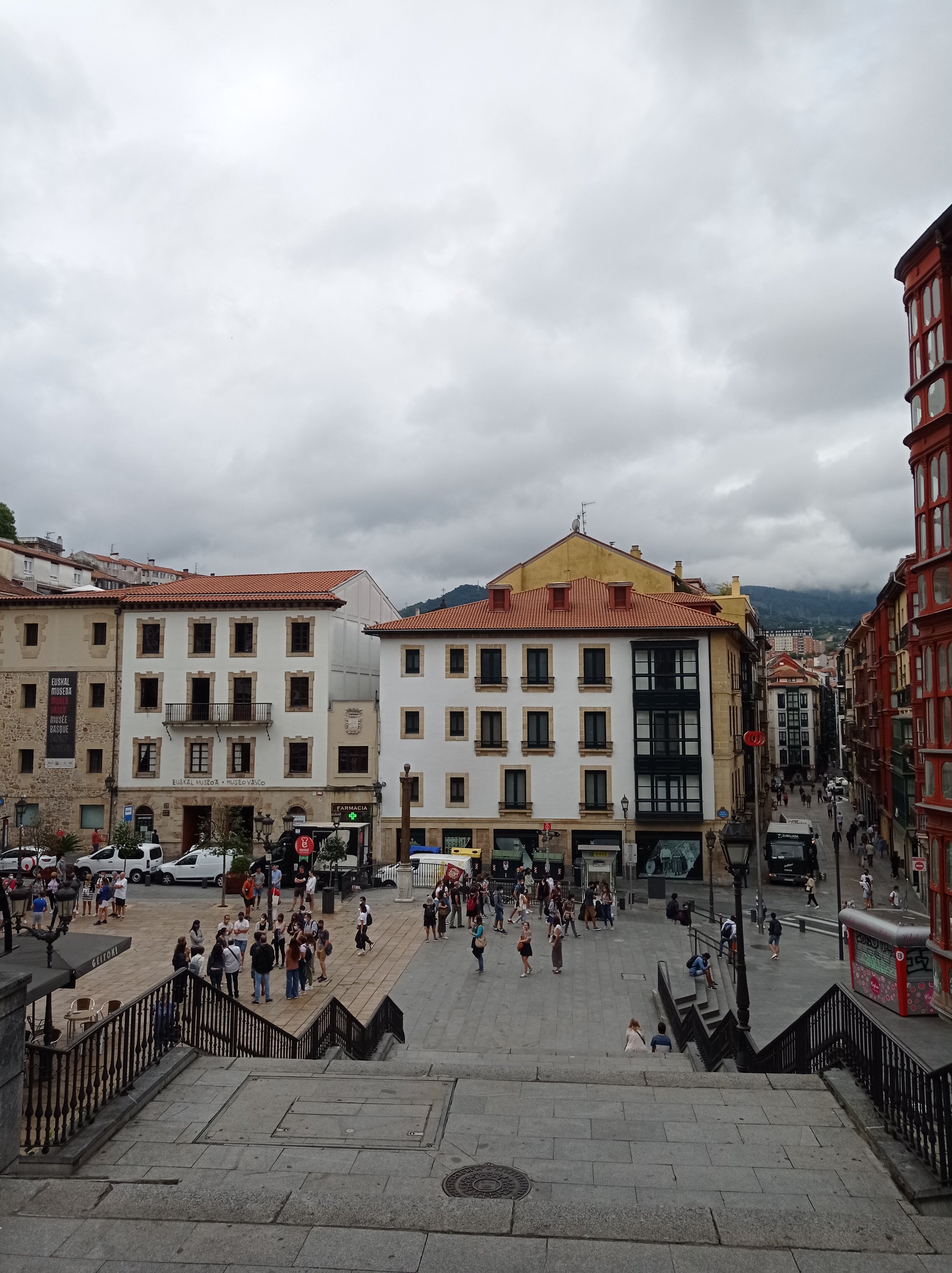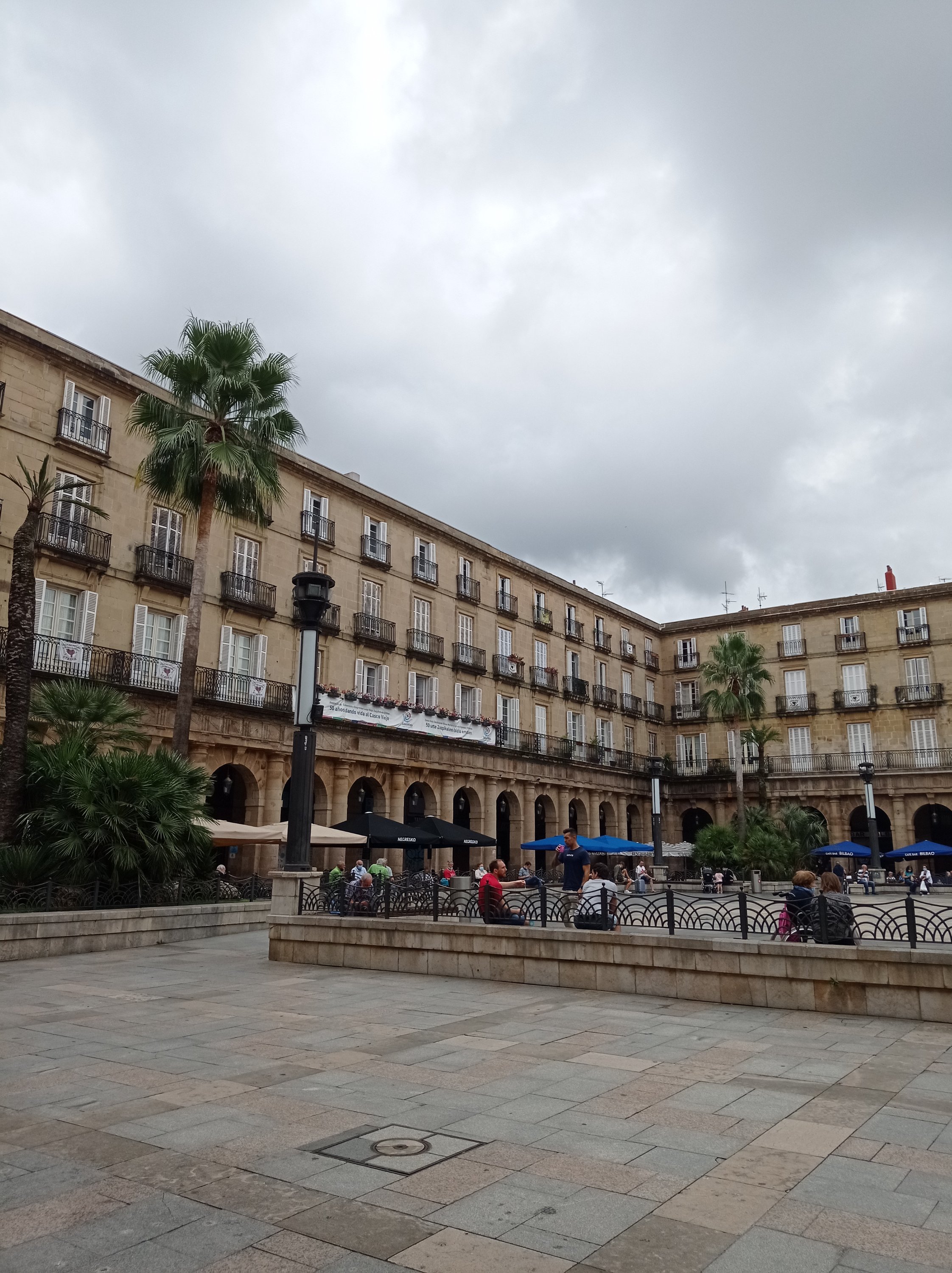 De la Catedral vamos hasta La Plaza nueva en el corazón de la villa, nueva porque había otra antes y además porque no deja de reinventarse, en esta plaza además de bares y restaurantes se encuentra la Real Academia de la Lengua Vasca y la Euskaltzaindia.