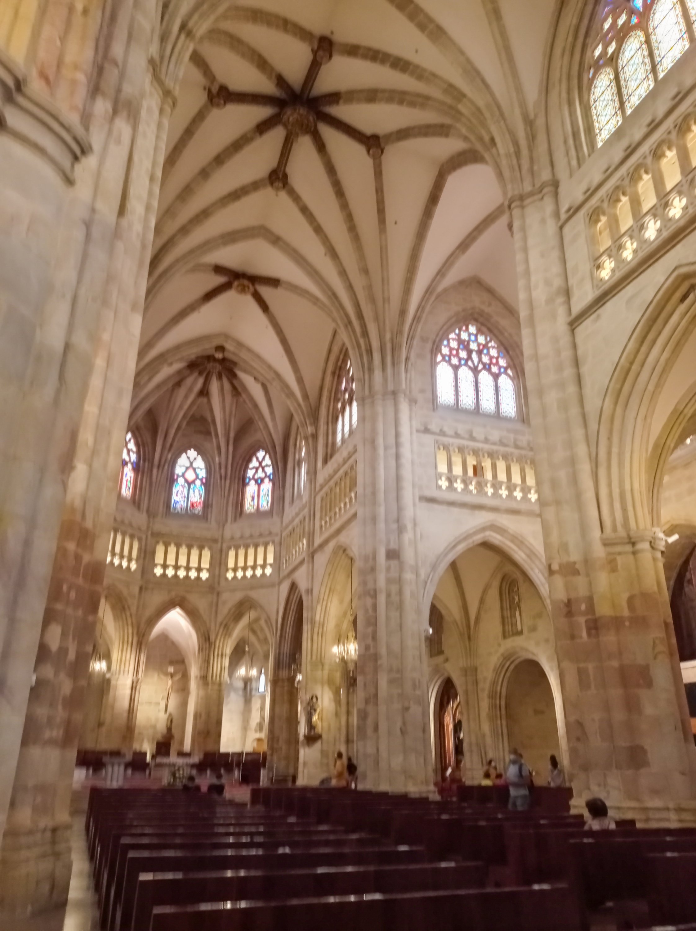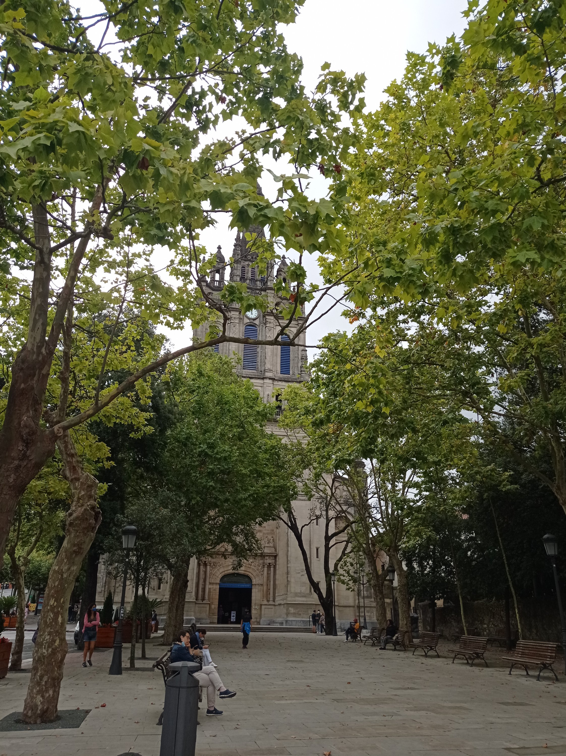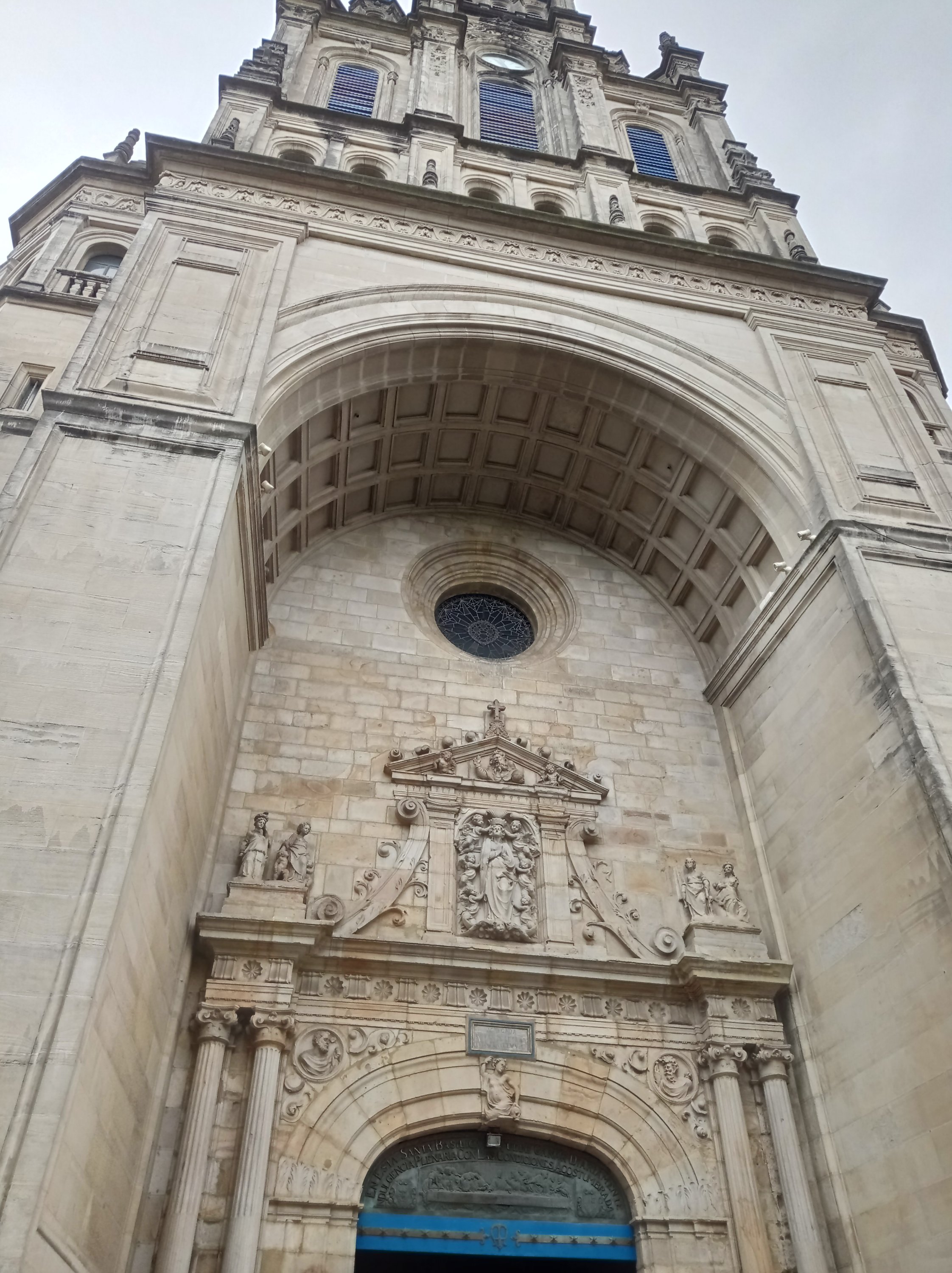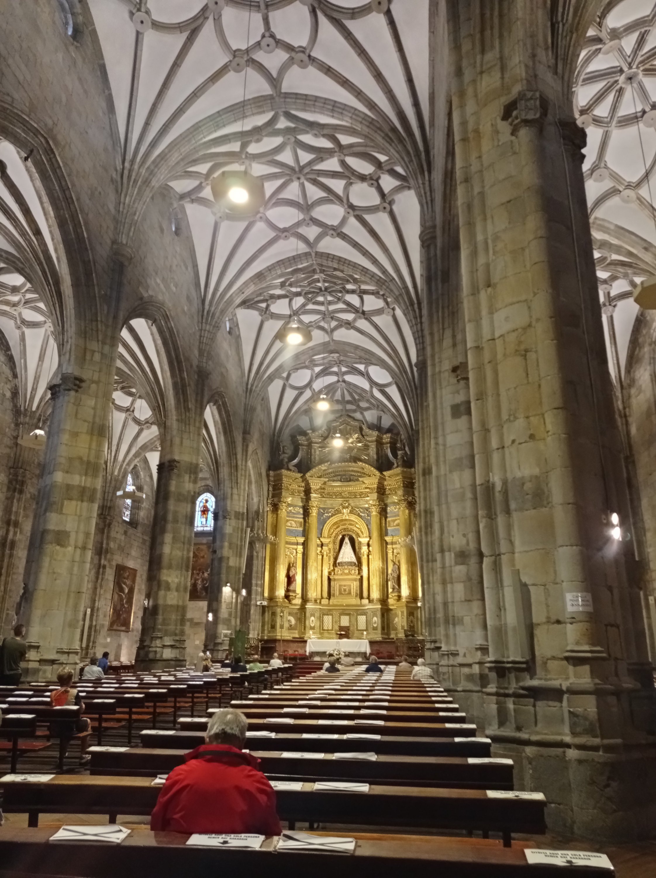 Volvemos hacia el casco viejo para adentrarnos en las calles y llegar esta vez a la Catedral de Santiago, un templo gótico del último cuarto del siglo XIV y principios del XV, su exterior (la fachada y la torre) es fruto de una reconstrucción del siglo XIX, tiene planta de cruz latina con tres naves, en el que hay que destacar su claustro gótico.