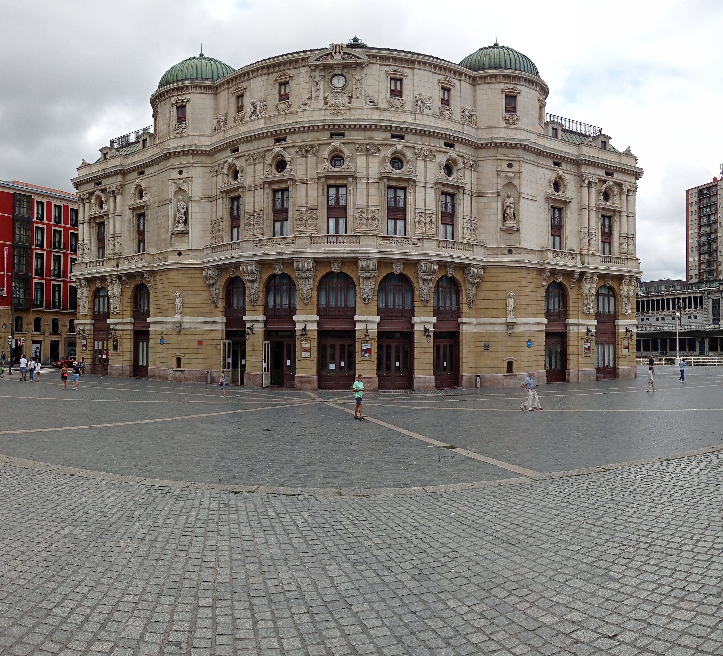 compositor bilbaíno Juan Crisóstomo Arriaga, este edificio sufrió un incendio que obligo a reconstruirla y para ello se tomó como ejemplo el Teatro de la Opera de Paris y esto se nota en la fachada y los elementos decorativos, una fachada principal con dos torres poligonales y la planta tiene forma de arco de herradura (característico de la tradición teatral italiana).