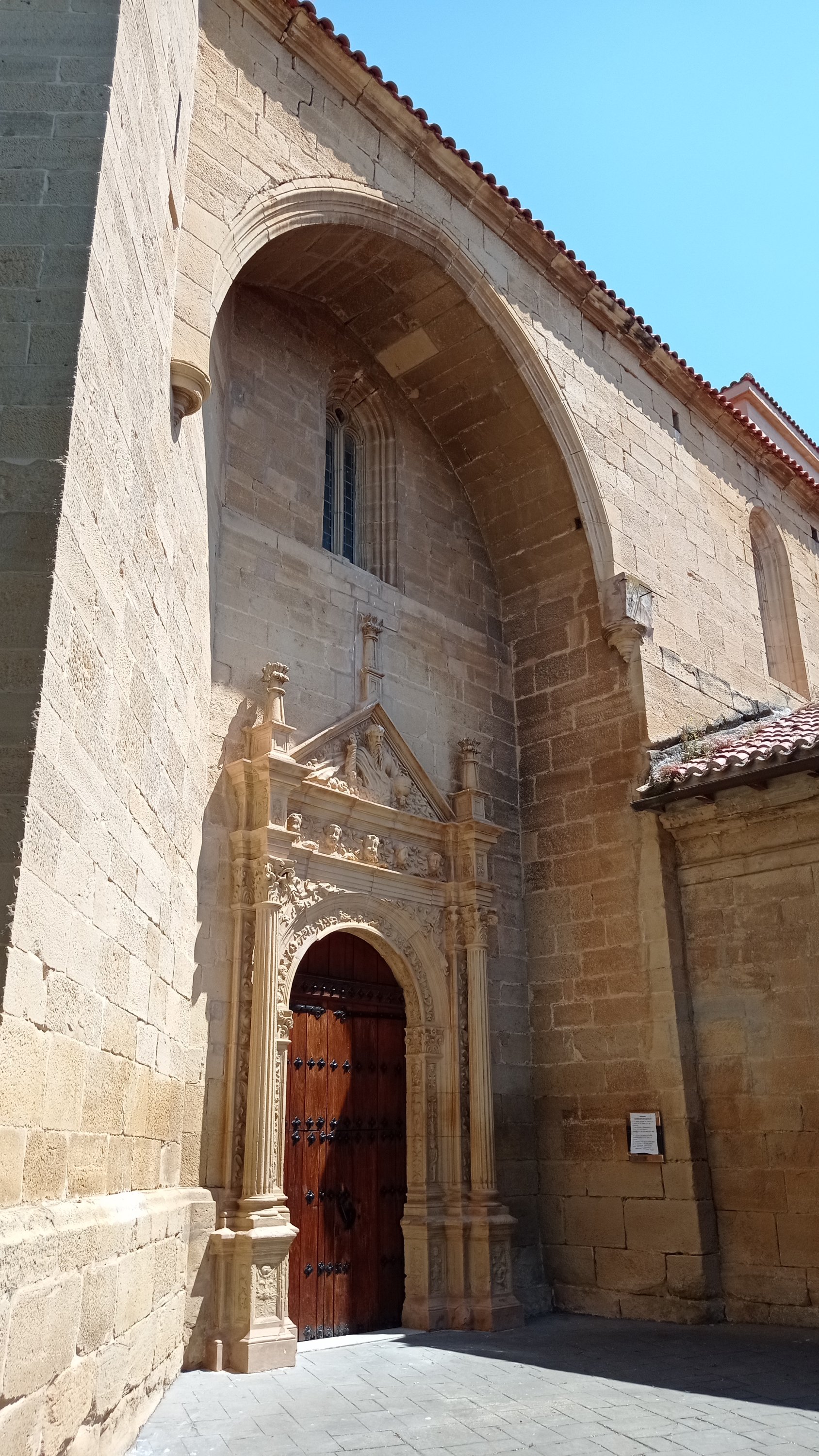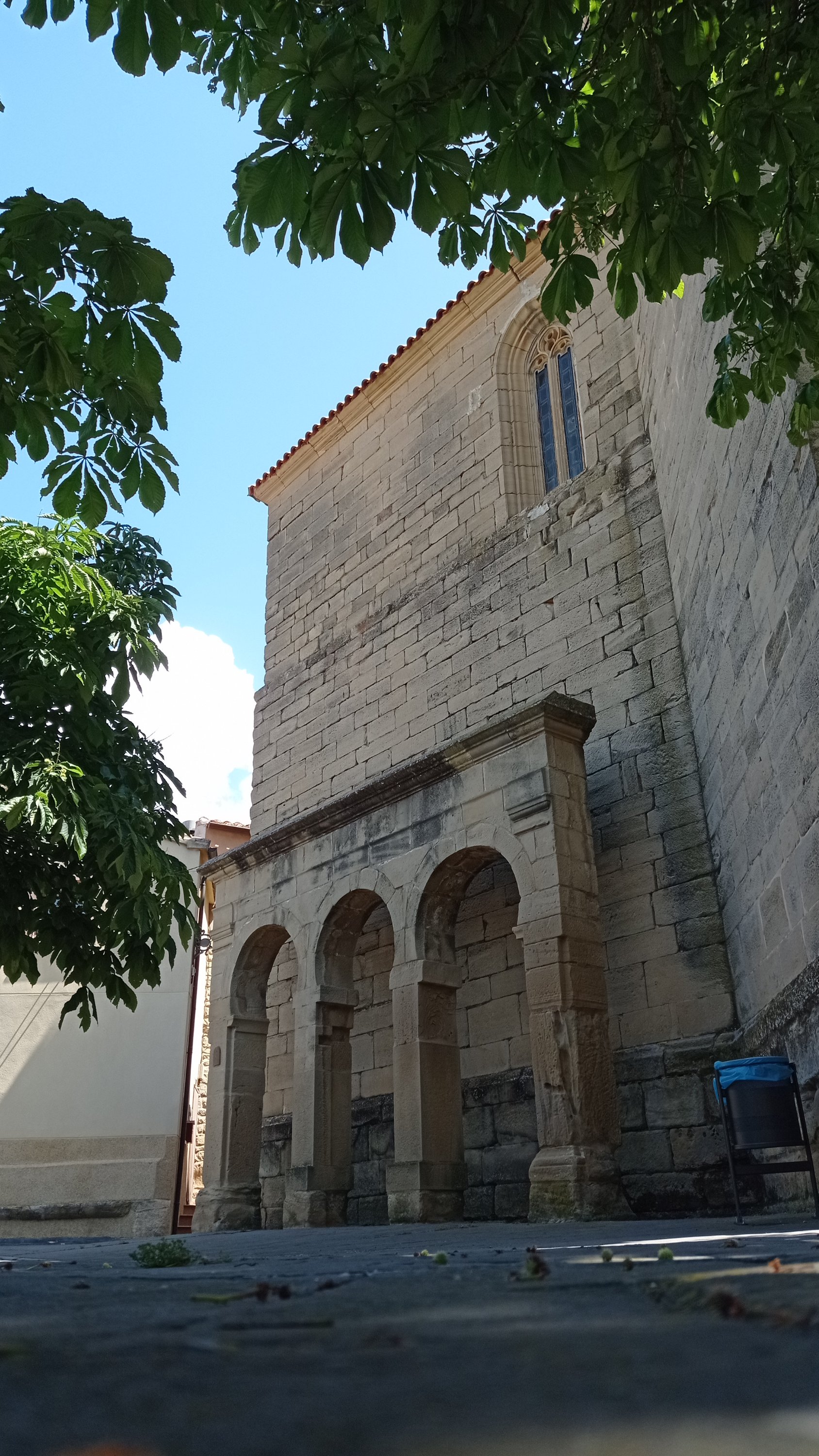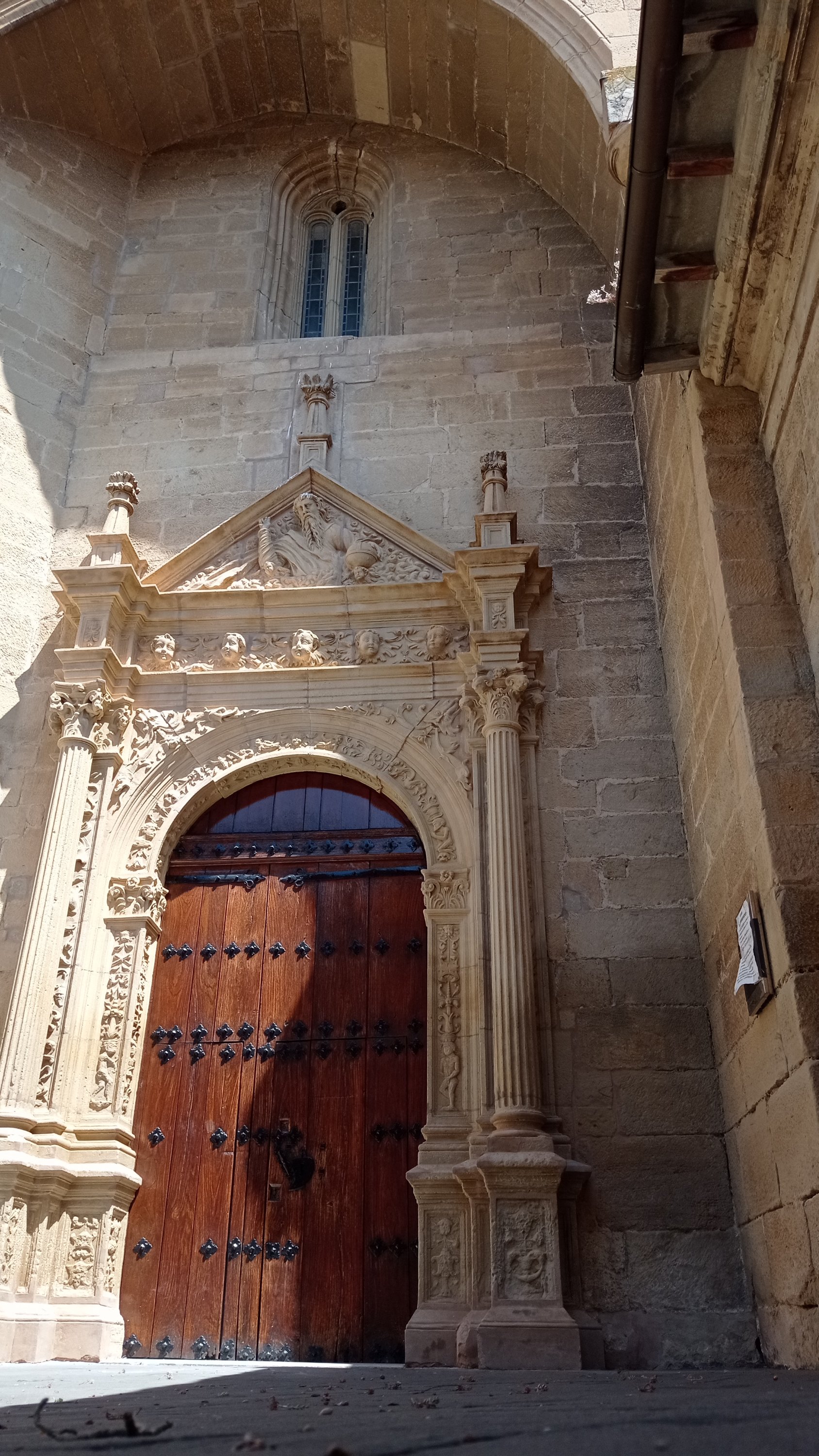 Lo que vemos en lo más alto es la Iglesia parroquial de Santa María de Moreda, tiene dos iglesias, la vieja de los siglos XV – XVI y la nueva construida entre los años 1698-1704, con planta de cruz latina, en su portada destaca su frontón triangular donde vemos la figura de Dios Padre creador, pero además está decorada con figuras mitológicas paganas y cristinas junto con motivos grutescos propios del renacimiento.