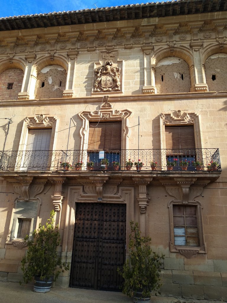 Volviendo al casco Antiguo llegaremos hasta la Casa Blasonada en la Calle Palacio 1, del siglo XVI con un escudo y una balconada esquinada.