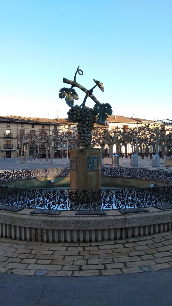 Y en esta plaza también se localiza la Fuente de la Uva, donde se pueden ver las placas de las bodegas de Fuenmayor.
