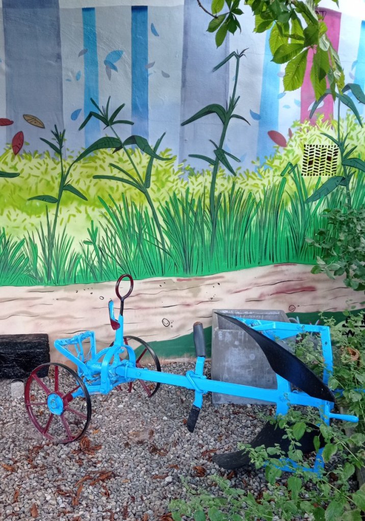Merece la pena recorrer sus calles en busca de esos murales, además de ver esos rincones, sus casas y los diferentes aperos de labranza que antiguamente se usaban y que están distribuidos por todo el municipio.