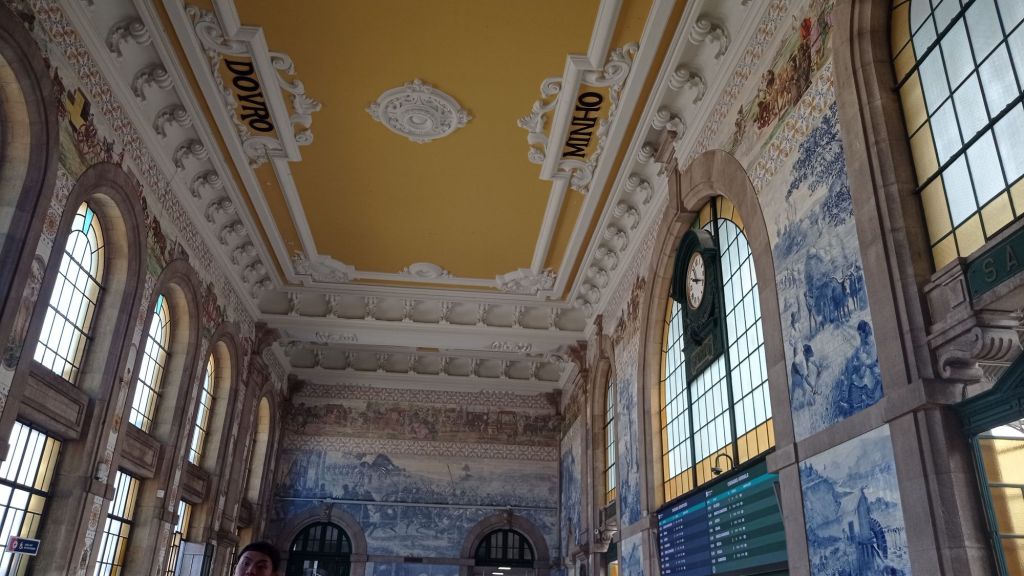 Tu siguiente parada es la Estación de São Bento, famosa por su impresionante vestíbulo decorado con más de 20,000 azulejos que narran episodios de la historia de Portugal.